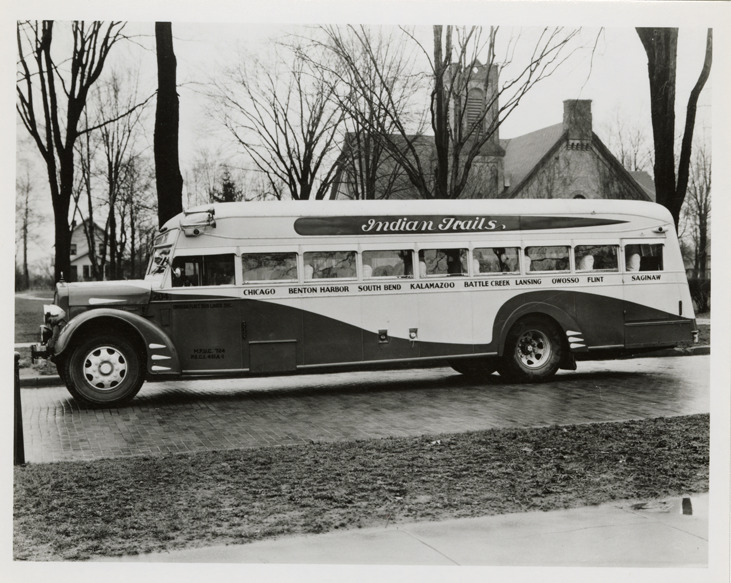 Favorite this☆ Indian Trails bus, Owosso Flint Bus Lines Description: View of an Indian Trails bus for the Owosso Flint Bus Lines. Handwritten on back: "Indian Trails. Owosso Flint Bus Lines." Details Resource ID: na048725 Subject: Buses Indian Trails, Inc. Photographic prints Date Issued: Unknown year Format: 1 photographic print ; 4 x 5 in. Member of: National Automotive History Collection Filing Location: MS121/VanDegrift, Thomas, 11:12 Rights: Physical rights are retained by DPL. Copyright is retained in accordance with U.S. copyright laws.