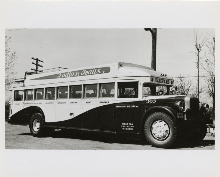 Favorite this☆ Indian Trails bus, Owosso Flint Bus Lines Description: View of an Indian Trails bus for the Owosso Flint Bus Lines. Handwritten on back: "Indian Trails. Owosso Flint Bus Lines." Details Resource ID: na048727 Subject: Buses Indian Trails, Inc. Photographic prints Date Issued: Unknown year Format: 1 photographic print ; 4 x 5 in. Member of: National Automotive History Collection Filing Location: MS121/VanDegrift, Thomas, 11:12 Rights: Physical rights are retained by DPL. Copyright is retained in accordance with U.S. copyright laws.