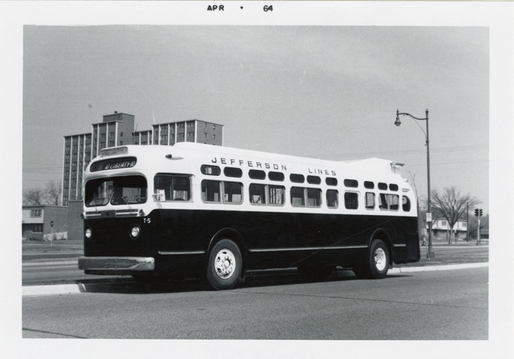 Favorite this☆ Jefferson Transportation Company bus Description: View of a Jefferson Transportation Company bus. Printed on front: "Apr 64." Handwritten on back: "GM TDH 4509. Jefferson Transp. Co., Minneapolis, Minn." Details Resource ID: na048764 Subject: Buses Jefferson Transportation Company Photographic prints Date Issued: 1964-04 Format: 1 photographic print ; 3.5 x 5 in. Member of: National Automotive History Collection Filing Location: MS121/VanDegrift, Thomas, 12:1 Rights: Physical rights are retained by DPL. Copyright is retained in accordance with U.S. copyright laws.