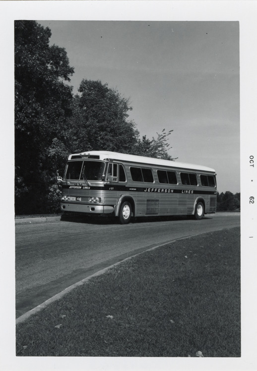 Favorite this☆ Jefferson Transportation Company bus Description: View of a Jefferson Transportation Company bus. Printed on front: "Oct 62." Handwritten on back: "Jefferson Transportation." Details Resource ID: na048803 Subject: Buses Jefferson Transportation Company Photographic prints Date Issued: 1962-10 Format: 1 photographic print ; 5 x 3.5 in. Member of: National Automotive History Collection Filing Location: MS121/VanDegrift, Thomas, 12:3 Rights: Physical rights are retained by DPL. Copyright is retained in accordance with U.S. copyright laws.