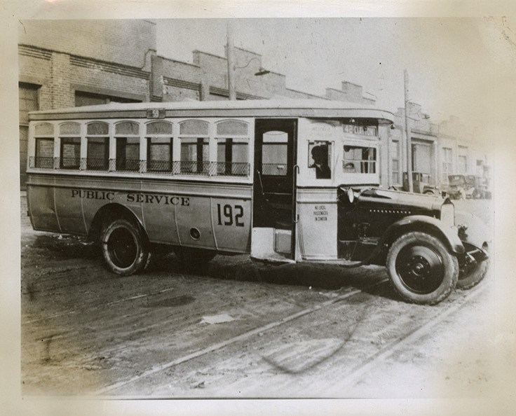 View of a White bus for Public Service Coordinated Transport at Camden, New Jersey. Handwritten on back: "White 50A. #192. Camden, NJ, 1929. Public Service Coord. Transport of NJ."