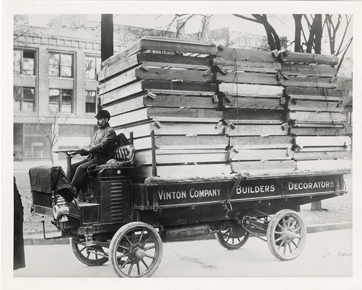 Favorite this☆ Driver posing in 1911 Reliance truck, Vinton Company Description: View of a driver posing in a 1911 Reliance truck, owned by the Vinton Company. Painted on side of truck: "Vinton Company, builders, decorators." Handwritten on back: "Reliance, 1911." Details Resource ID: na048989 Subject: Trucks Reliance Motor Truck Company Photographic prints Date Issued: Unknown year Format: 1 photographic print ; 4 x 5 in. Member of: National Automotive History Collection Filing Location: MS121/VanDegrift, Thomas, 14:1 Rights: Physical rights are retained by DPL. Copyright is retained in accordance with U.S. copyright laws.