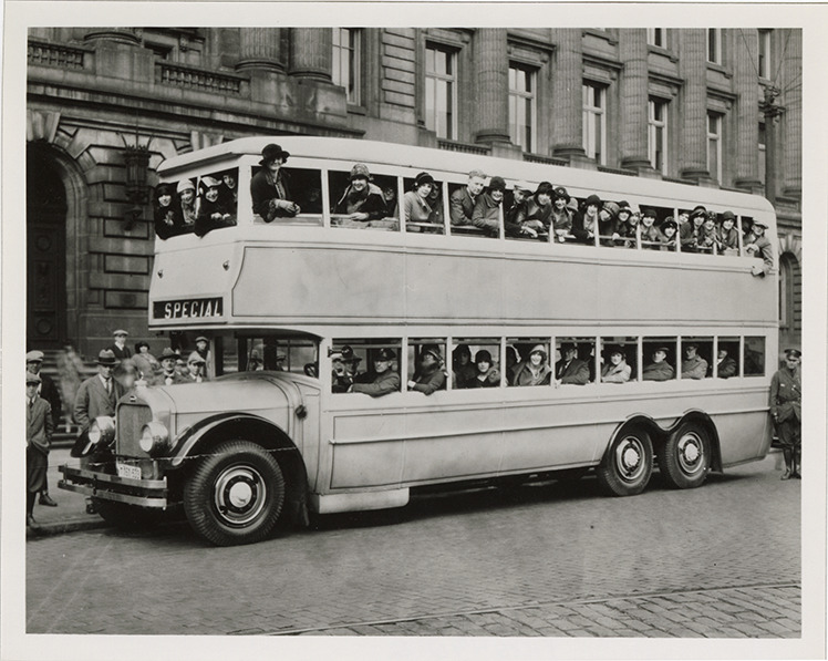Favorite this☆ Safeway Six Wheel bus Description: View of passengers posing on a Safeway Six Wheel double-decker bus. Handwritten on back: "Safeway Six Wheel." Details Resource ID: na049010 Subject: Buses Safeway Six-Wheel Company Photographic prints Date Issued: Unknown year Format: 1 photographic print ; 4 x 5 in. Member of: National Automotive History Collection Filing Location: MS121/VanDegrift, Thomas, 14:3 Rights: Physical rights are retained by DPL. Copyright is retained in accordance with U.S. copyright laws.