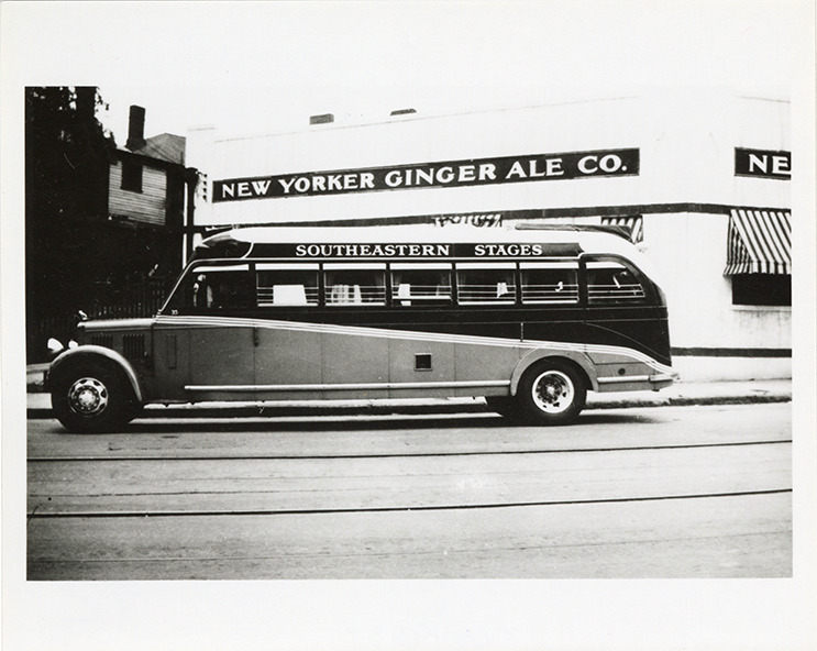 Favorite this☆ Southeastern Stages bus Description: View of a Southeastern Stages bus, parked in front of the New Yorker Ginger Ale Co. Details Resource ID: na049037 Subject: Buses Southeastern Stages Photographic prints Date Issued: Unknown year Format: 1 photographic print ; 4 x 5 in. Member of: National Automotive History Collection Filing Location: MS121/VanDegrift, Thomas, 14:7 Rights: Physical rights are retained by DPL. Copyright is retained in accordance with U.S. copyright laws.
