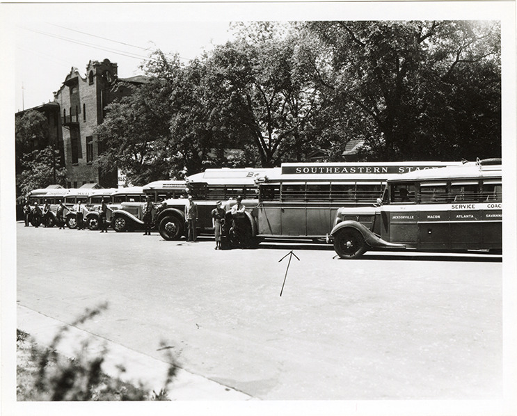 Favorite this☆ Southeastern Stages bus, parked adjacent to unidentified buses Description: View of a Southeastern Stages bus parked adjacent to unidentified buses, indicated by an arrow. Details Resource ID: na049040 Subject: Buses Southeastern Stages Photographic prints Date Issued: Unknown year Format: 1 photographic print ; 4 x 5 in. Member of: National Automotive History Collection Filing Location: MS121/VanDegrift, Thomas, 14:7 Rights: Physical rights are retained by DPL. Copyright is retained in accordance with U.S. copyright laws.