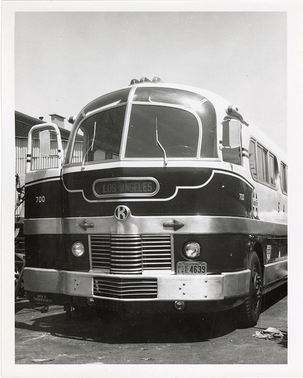 Favorite this☆ Santa Fe Trailways bus Description: Front view of a Santa Fe Trailways bus. Handwritten on back: "Trailways. Santa Fe Trailways. Kaiser articulated." Details Resource ID: na049075 Subject: Buses Santa Fe Trailways Photographic prints Date Issued: Unknown year Format: 1 photographic print ; 5 x 4 in. Member of: National Automotive History Collection Filing Location: MS121/VanDegrift, Thomas, 14:14 Rights: Physical rights are retained by DPL. Copyright is retained in accordance with U.S. copyright laws.