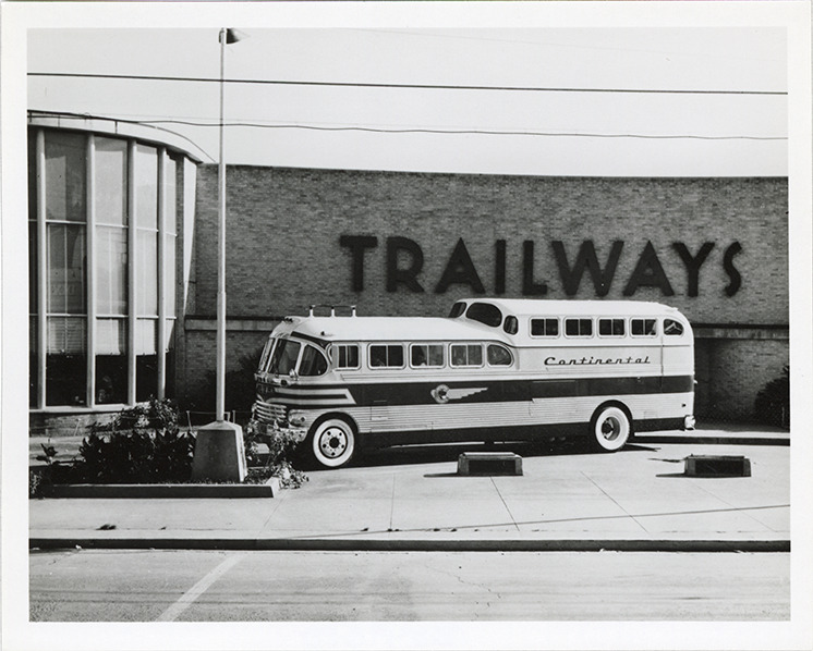 Favorite this☆ Continental Trailways bus Description: View of a Continental Trailways bus. Handwritten on back: "Trailways Continental deck & 1/2." Details Resource ID: na049080 Subject: Buses Continental Trailways, Inc. Photographic prints Date Issued: Unknown year Format: 1 photographic print ; 4 x 5 in. Member of: National Automotive History Collection Filing Location: MS121/VanDegrift, Thomas, 14:15 Rights: Physical rights are retained by DPL. Copyright is retained in accordance with U.S. copyright laws.