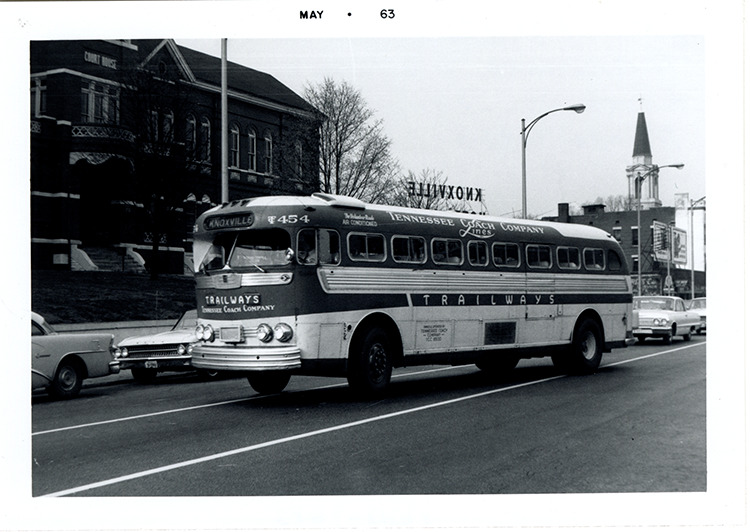 Favorite this☆ Trailways bus, Tennessee Coach Company, Knoxville, Tennessee Description: View of a Trailways bus for the Tennessee Coach Company at Knoxville, Tennessee. Printed on front: "May 63." Handwritten on back: "GM PD3703. Tennessee Trailways. Knoxville, Tenn. March 1963." Details Resource ID: na049085 Subject: Buses--Tennessee--Knoxville Trailways Transportation System Photographic prints Date Issued: 1963-03 Format: 1 photographic print ; 3.5 x 5 in. Member of: National Automotive History Collection Filing Location: MS121/VanDegrift, Thomas, 14:16 Rights: Physical rights are retained by DPL. Copyright is retained in accordance with U.S. copyright laws.