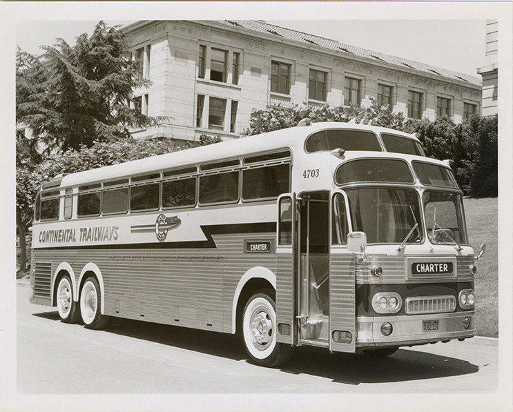 Favorite this☆ Continental Trailways Silver Eagle bus Description: View of a Continental Trailways Silver Eagle bus. Handwritten on back: "Continental Trailways Silver Eagle. 5-1958." Details Resource ID: na049087 Subject: Buses Continental Trailways, Inc. Photographic prints Date Issued: 1958-05 Format: 1 photographic print ; 4 x 5 in. Member of: National Automotive History Collection Filing Location: MS121/VanDegrift, Thomas, 14:16 Rights: Physical rights are retained by DPL. Copyright is retained in accordance with U.S. copyright laws.