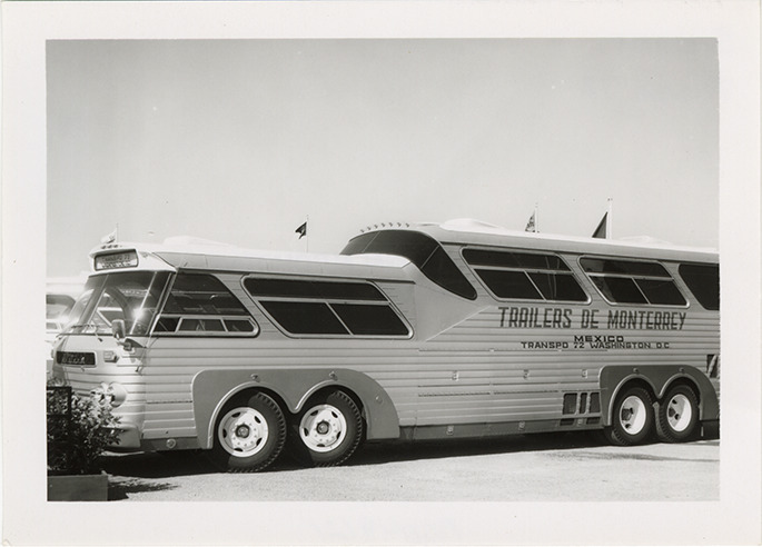 Favorite this☆ Sultana bus, Transpo '72 Description: View of a Sultana bus at Transpo '72. Painted on side of bus: "Trailers de Monterrey, Mexico. Transpo 72, Washington, D.C." Handwritten on back: "Sultana, Transpo 72." Details Resource ID: na049121 Subject: Buses--Washington (D.C.) Trailers de Monterrey S.A. Air Transportation Conference (1972 : Washington, D.C.) Photographic prints Date Issued: 1972 Format: 1 photographic print ; 3.25 x 4.5 in. Member of: National Automotive History Collection Filing Location: MS121/VanDegrift, Thomas, 15:1 Rights: Physical rights are retained by DPL. Copyright is retained in accordance with U.S. copyright laws.