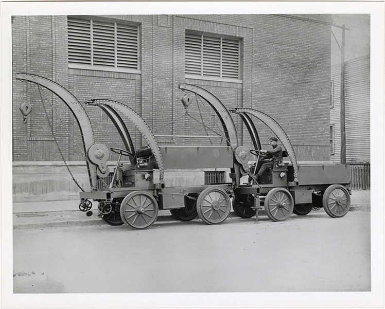 Favorite this☆ Walker electric trucks with hoists Description: View of two Walker electric trucks with hoists. Handwritten on back: "Walker electric." Details Resource ID: na049158 Subject: Electric trucks Walker Vehicle Co. Hoisting machinery Photographic prints Date Issued: Unknown year Format: 1 photographic print ; 4 x 5 in. Member of: National Automotive History Collection Filing Location: MS121/VanDegrift, Thomas, 15:5 Rights: Physical rights are retained by DPL. Copyright is retained in accordance with U.S. copyright laws.