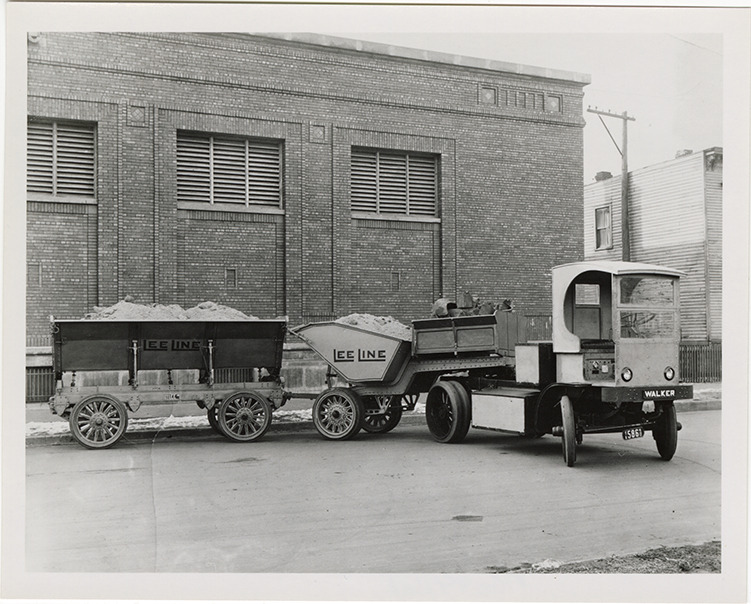 Favorite this☆ Walker electric truck towing Lee Line dumpsters Description: View of a Walker electric truck towing two Lee Line dumpsters. Handwritten on back: "Walker electric." Details Resource ID: na049161 Subject: Electric trucks Walker Vehicle Co. Photographic prints Date Issued: Unknown year Format: 1 photographic print ; 4 x 5 in. Member of: National Automotive History Collection Filing Location: MS121/VanDegrift, Thomas, 15:5 Rights: Physical rights are retained by DPL. Copyright is retained in accordance with U.S. copyright laws.