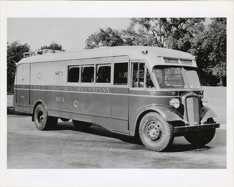 Favorite this☆ 1935 White bus, Santa Fe Transportation Company Description: View of 1935 White bus for the Santa Fe Transportation Company. Handwritten on back: "White. Model 718. Santa Fe Transit Co. 'Bruck,' 1935." Details Resource ID: na049190 Subject: Buses White Motor Car Company Santa Fe Transportation Company Photographic prints Date Issued: Unknown year Format: 1 photographic print ; 4 x 5 in. Member of: National Automotive History Collection Filing Location: MS121/VanDegrift, Thomas, 15:8 Rights: Physical rights are retained by DPL. Copyright is retained in accordance with U.S. copyright laws.