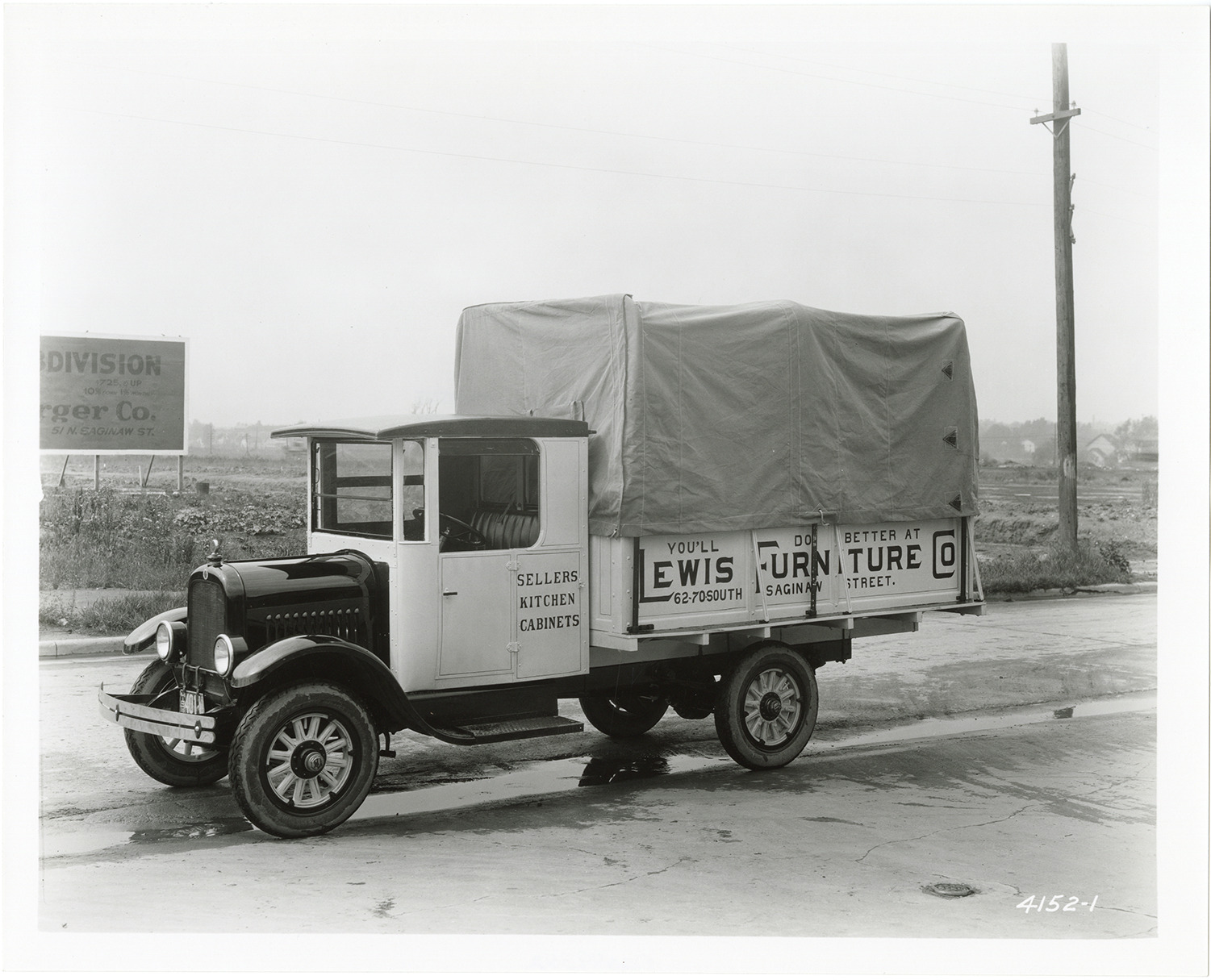 Yellow Knight truck, Lewis Furniture Co., Pontiac, Michigan