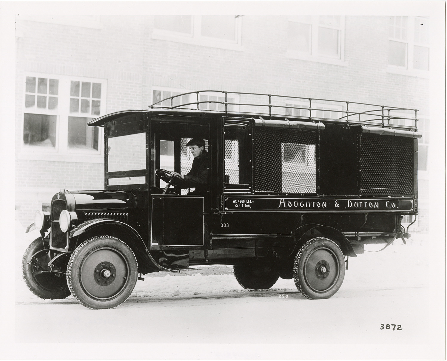 Favorite this☆ Driver posing in Yellow Knight truck, Houghton & Dutton Co. Description: View of a driver posing in a Yellow Knight truck for Houghton & Dutton Co. at Boston, Massachusetts. Handwritten on back: "Yellow Knight T-2. Boston, Mass. About 1926." Details Resource ID: na049309 Subject: Trucks--Massachusetts--Boston Yellow Sleeve Valve Engine Works Photographic prints Date Issued: 1926 (year approximate) Format: 1 photographic print ; 8 x 10 in. Member of: National Automotive History Collection Filing Location: MS121/VanDegrift, Thomas, 15:14 Rights: Physical rights are retained by DPL. Copyright is retained in accordance with U.S. copyright laws.