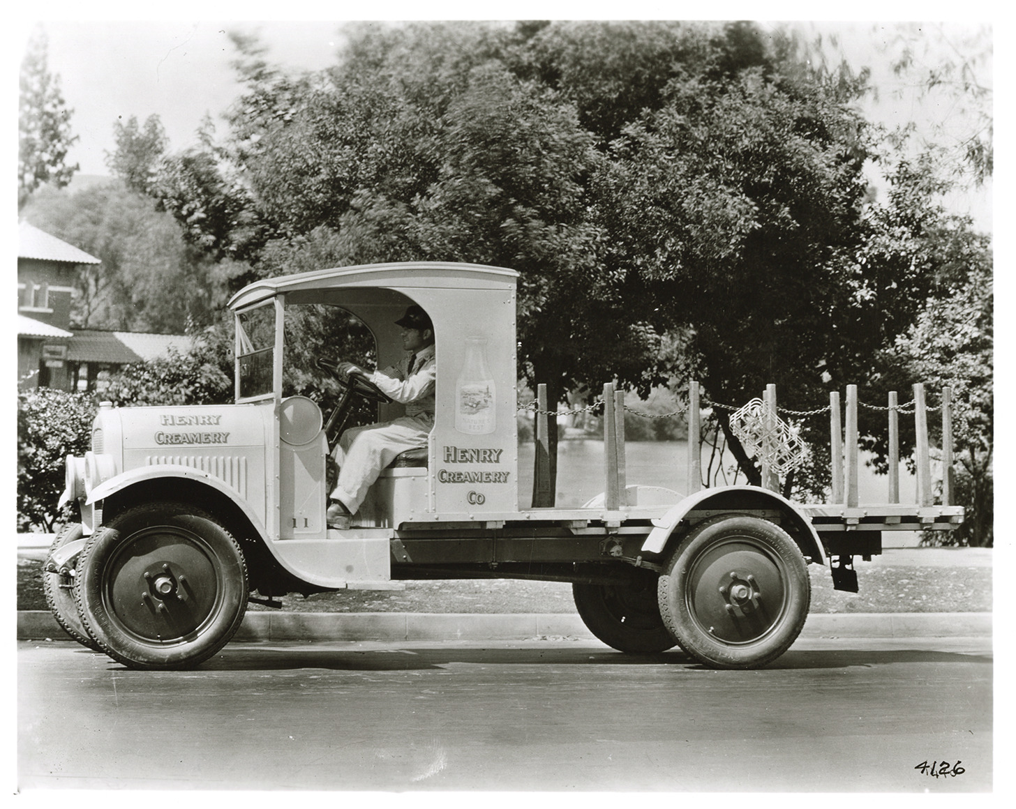 Favorite this☆ Driver posing in Yellow Knight truck, Henry Creamery Co. Description: View of a driver posing in a Yellow Knight truck for the Henry Creamery Co. at Los Angeles, California. Handwritten on back: "Yellow Knight T-2. Los Angeles. Circa 1926." Details Resource ID: na049313 Subject: Trucks--California--Los Angeles Yellow Sleeve Valve Engine Works Photographic prints Date Issued: 1926 (year approximate) Format: 1 photographic print ; 8 x 10 in. Member of: National Automotive History Collection Filing Location: MS121/VanDegrift, Thomas, 15:15 Rights: Physical rights are retained by DPL. Copyright is retained in accordance with U.S. copyright laws.