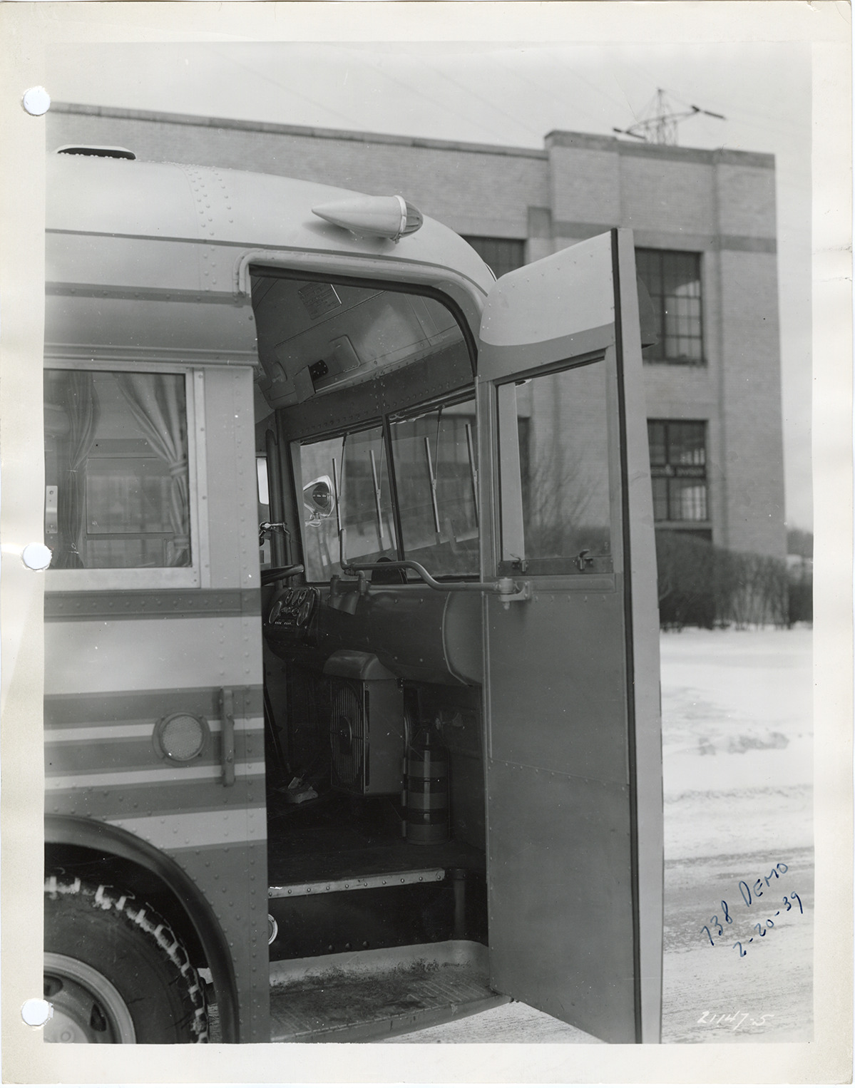 Favorite this☆ Door, Yellow Truck and Coach bus, Model 738 Description: View of a Yellow Truck and Coach bus, Model 738, showing open entrance door. Handwritten on front: "738 demo, 2-20-39." Handwritten on back: "Yellow Truck & Coach. Model 738." Details Resource ID: na049517 Subject: Buses--Doors Yellow Truck and Coach Manufacturing Company General Motors Truck Company Photographic prints Date Issued: 1939-02-20 Format: 1 photographic print ; 10 x 8 in. Member of: National Automotive History Collection Filing Location: MS121/VanDegrift, Thomas, 17:9 Rights: Physical rights are retained by DPL. Copyright is retained in accordance with U.S. copyright laws.