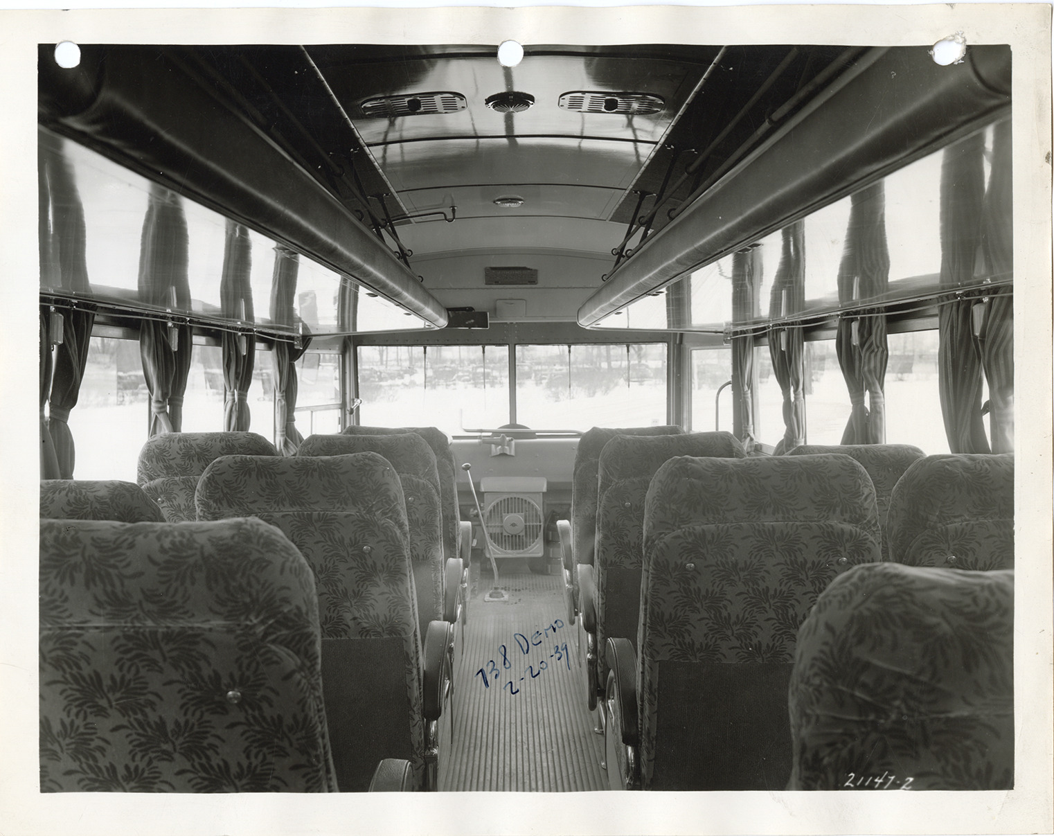 Favorite this☆ Interior, Yellow Truck and Coach bus, Model 738 Description: Interior view of the front of a Yellow Truck and Coach bus, Model 738, showing seats. Handwritten on front: "738 demo, 2-20-39." Handwritten on back: "Yellow Truck & Coach. Model 738." Details Resource ID: na049519 Subject: Buses--Interiors Buses--Seats Yellow Truck and Coach Manufacturing Company General Motors Truck Company Photographic prints Date Issued: 1939-02-20 Format: 1 photographic print ; 8 x 10 in. Member of: National Automotive History Collection Filing Location: MS121/VanDegrift, Thomas, 17:9 Rights: Physical rights are retained by DPL. Copyright is retained in accordance with U.S. copyright laws.