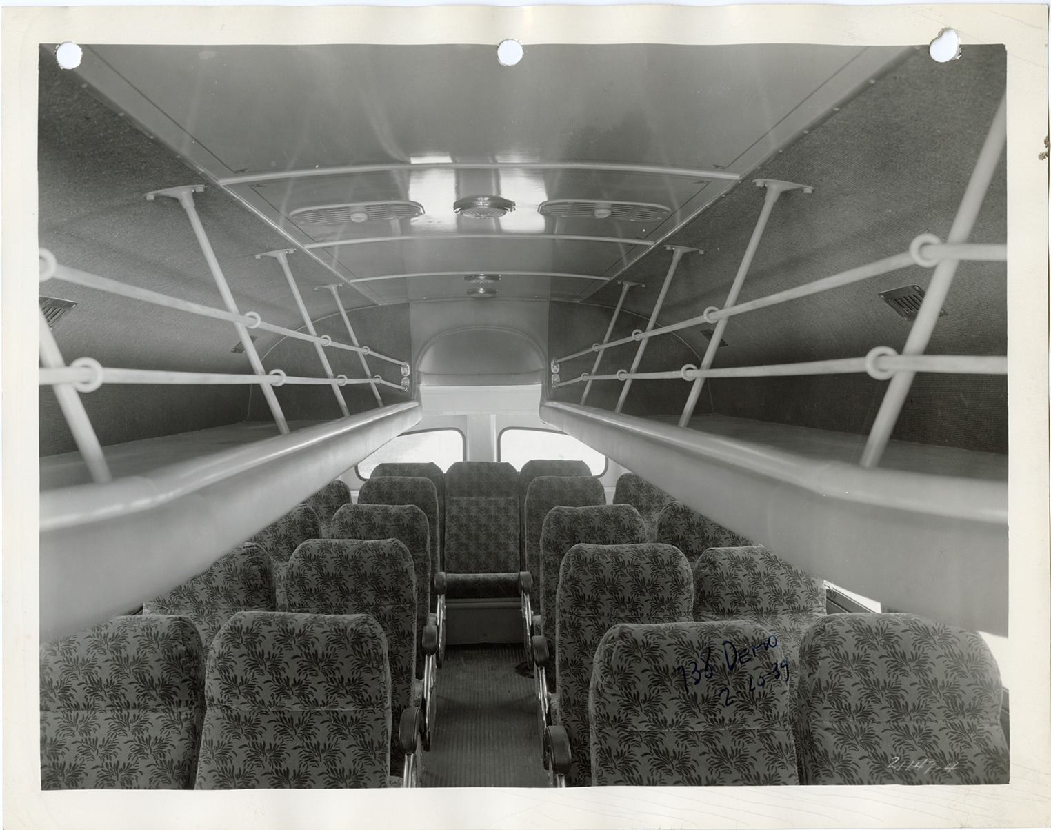 Favorite this☆ Interior, Yellow Truck and Coach bus, Model 738 Description: Interior view of the front of a Yellow Truck and Coach bus, Model 738, showing seats. Handwritten on front: "738 demo, 2-20-39." Handwritten on back: "Yellow Truck & Coach. Model 738." Details Resource ID: na049520 Subject: Buses--Interiors Buses--Seats Yellow Truck and Coach Manufacturing Company General Motors Truck Company Photographic prints Date Issued: 1939-02-20 Format: 1 photographic print ; 8 x 10 in. Member of: National Automotive History Collection Filing Location: MS121/VanDegrift, Thomas, 17:9 Rights: Physical rights are retained by DPL. Copyright is retained in accordance with U.S. copyright laws.