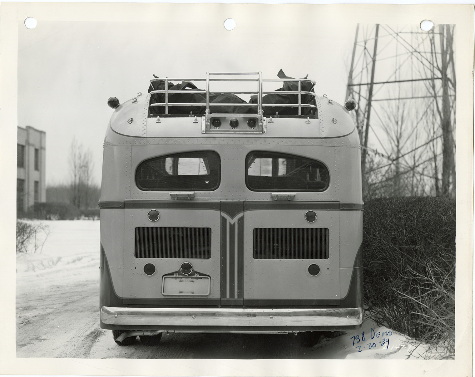 Favorite this☆ Yellow Truck and Coach bus, Model 738 Description: Rear view of a Yellow Truck and Coach bus, Model 738. Handwritten on front: "738 demo, 2-20-39." Handwritten on back: "Yellow Truck & Coach. Model 738." Details Resource ID: na049522 Subject: Buses Yellow Truck and Coach Manufacturing Company General Motors Truck Company Photographic prints Date Issued: 1939-02-20 Format: 1 photographic print ; 8 x 10 in. Member of: National Automotive History Collection Filing Location: MS121/VanDegrift, Thomas, 17:9 Rights: Physical rights are retained by DPL. Copyright is retained in accordance with U.S. copyright laws.