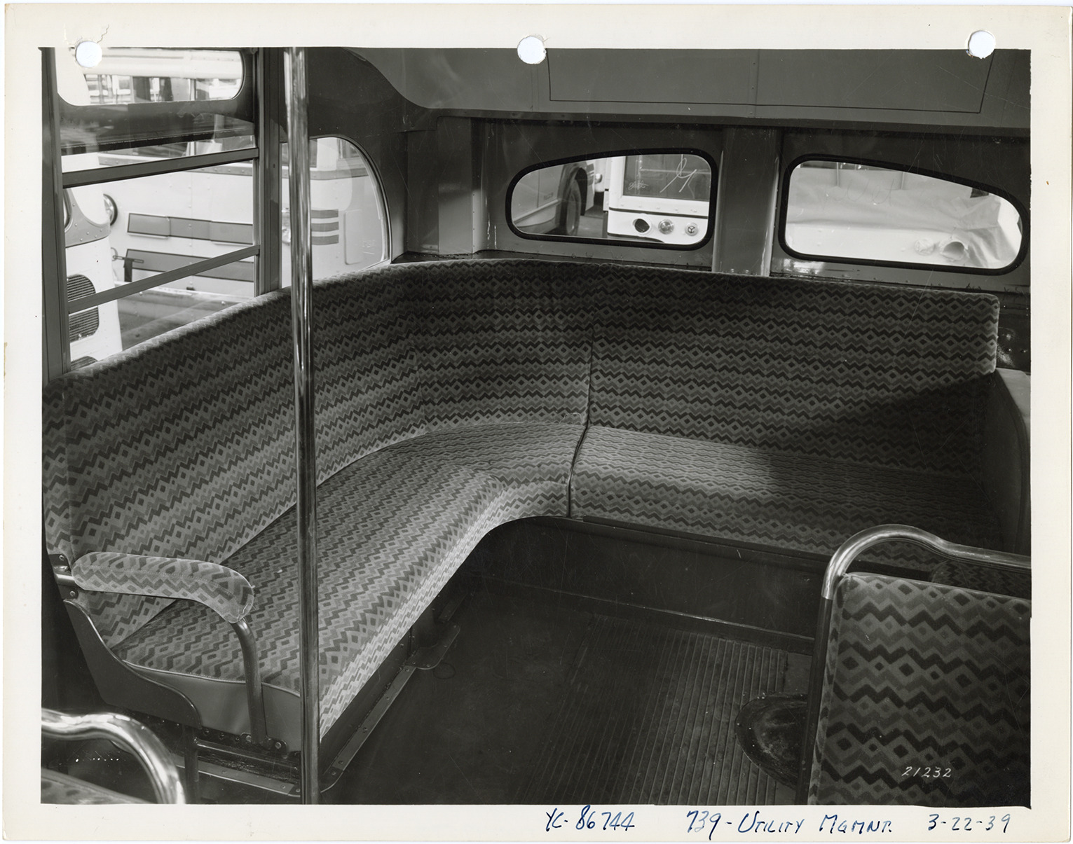 Favorite this☆ Interior, Yellow Truck and Coach bus, Model 739 Description: Interior view of a Yellow Truck and Coach bus, Model 739, showing seats. Handwritten on front: "YC-86744, 739, Utility Mgmnt., 3-22-39." Handwritten on back: "Yellow Truck & Coach. Model 739." Details Resource ID: na049530 Subject: Buses--Interiors Buses--Seats Yellow Truck and Coach Manufacturing Company General Motors Truck Company Photographic prints Date Issued: 1939-03-22 Format: 1 photographic print ; 8 x 10 in. Member of: National Automotive History Collection Filing Location: MS121/VanDegrift, Thomas, 18:1 Rights: Physical rights are retained by DPL. Copyright is retained in accordance with U.S. copyright laws.