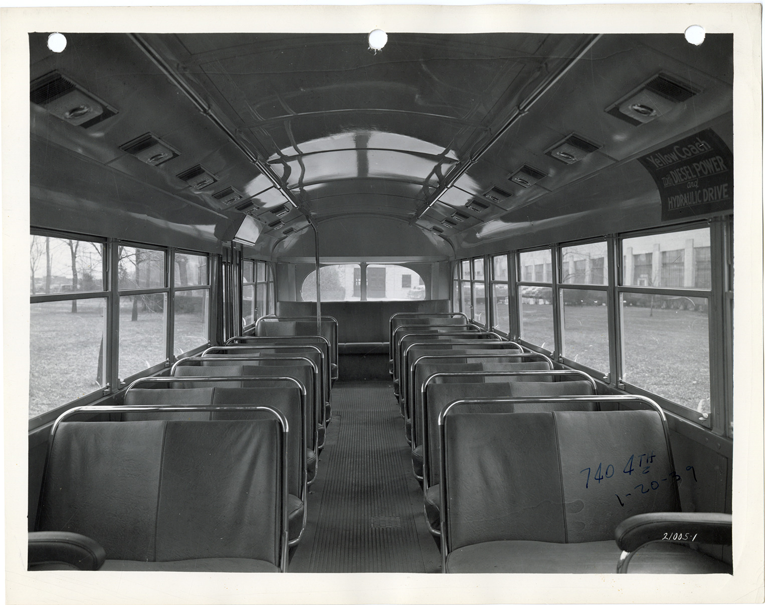 Favorite this☆ Interior, Yellow Truck and Coach bus, Model 740 Description: Interior view of a Yellow Truck and Coach bus, Model 740, showing seats. Handwritten on front: "740, 4th, 1-20-39." Handwritten on back: "Yellow Truck & Coach. Model 740." Details Resource ID: na049544 Subject: Buses--Interiors Buses--Seats Yellow Truck and Coach Manufacturing Company General Motors Truck Company Photographic prints Date Issued: 1939-01-20 Format: 1 photographic print ; 8 x 10 in. Member of: National Automotive History Collection Filing Location: MS121/VanDegrift, Thomas, 18:2 Rights: Physical rights are retained by DPL. Copyright is retained in accordance with U.S. copyright laws.