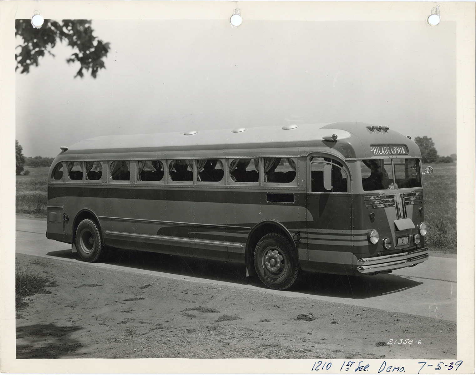 Favorite this☆ Yellow Truck and Coach bus, Model 1210 Description: View of a Yellow Truck and Coach bus, Model 1210. Handwritten on front: "1210, 1st ser. demo., 7-5-39." Handwritten on back: "Yellow Truck & Coach. Model 1210." Details Resource ID: na049619 Subject: Buses Yellow Truck and Coach Manufacturing Company General Motors Truck Company Photographic prints Date Issued: 1939-07-05 Format: 1 photographic print ; 8 x 10 in. Member of: National Automotive History Collection Filing Location: MS121/VanDegrift, Thomas, 19:1 Rights: Physical rights are retained by DPL. Copyright is retained in accordance with U.S. copyright laws.