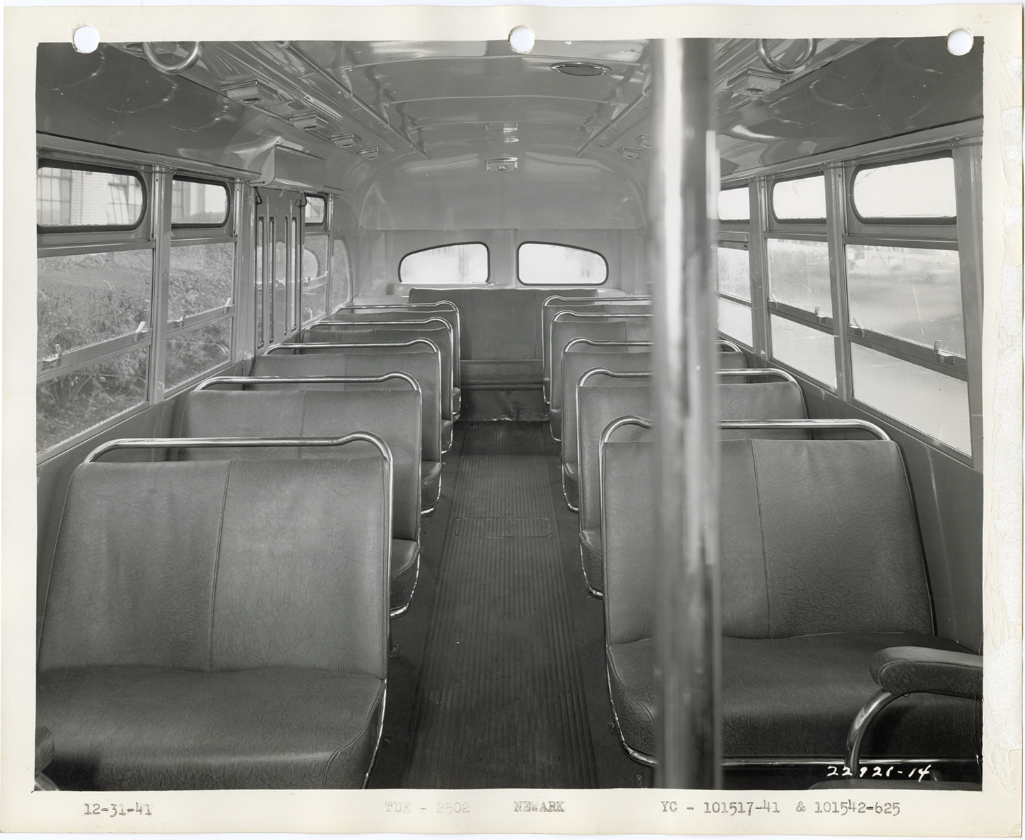 Favorite this☆ Interior, Yellow Truck and Coach bus, Model 2502 Description: Interior view of a Yellow Truck and Coach bus, Model 2502, showing seats. Typed on front: "12-31-41, TDE-2502, Newark, YC-101517-41 & 101542-625." Handwritten on back: "Yellow Truck & Coach. Model 2502." Details Resource ID: na049670 Subject: Buses--Interiors Buses--Seats Yellow Truck and Coach Manufacturing Company General Motors Truck Company Photographic prints Date Issued: 1941-12-31 Format: 1 photographic print ; 8 x 10 in. Member of: National Automotive History Collection Filing Location: MS121/VanDegrift, Thomas, 19:6 Rights: Physical rights are retained by DPL. Copyright is retained in accordance with U.S. copyright laws.