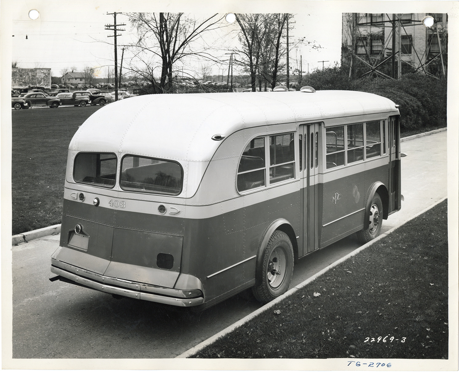 View of a Yellow Truck and Coach bus, Model 2706. Handwritten on front: "TG-2706." Handwritten on back: "Yellow Truck & Coach. Model 2706."