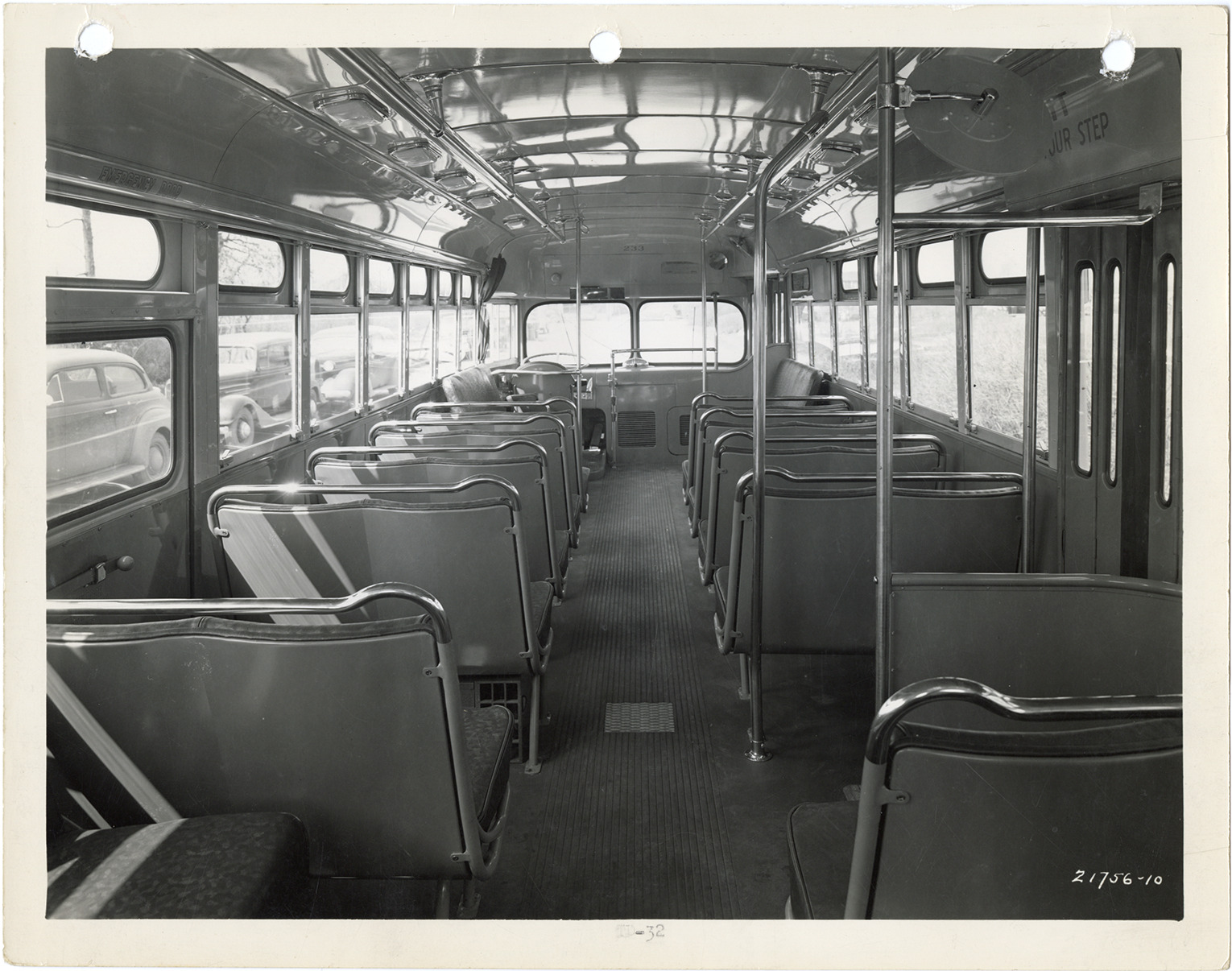 Favorite this☆ Interior, Yellow Truck and Coach bus, Model TD-32 Description: Interior view of a Yellow Truck and Coach bus, Model TD-32, showing seats. Typed on front: "TD-32." Handwritten on back: "Yellow Truck & Coach. Model TD-32." Details Resource ID: na049704 Subject: Buses Yellow Truck and Coach Manufacturing Company General Motors Truck Company Photographic prints Date Issued: Unknown year Format: 1 photographic print ; 8 x 10 in. Member of: National Automotive History Collection Filing Location: MS121/VanDegrift, Thomas, 20:3 Rights: Physical rights are retained by DPL. Copyright is retained in accordance with U.S. copyright laws.