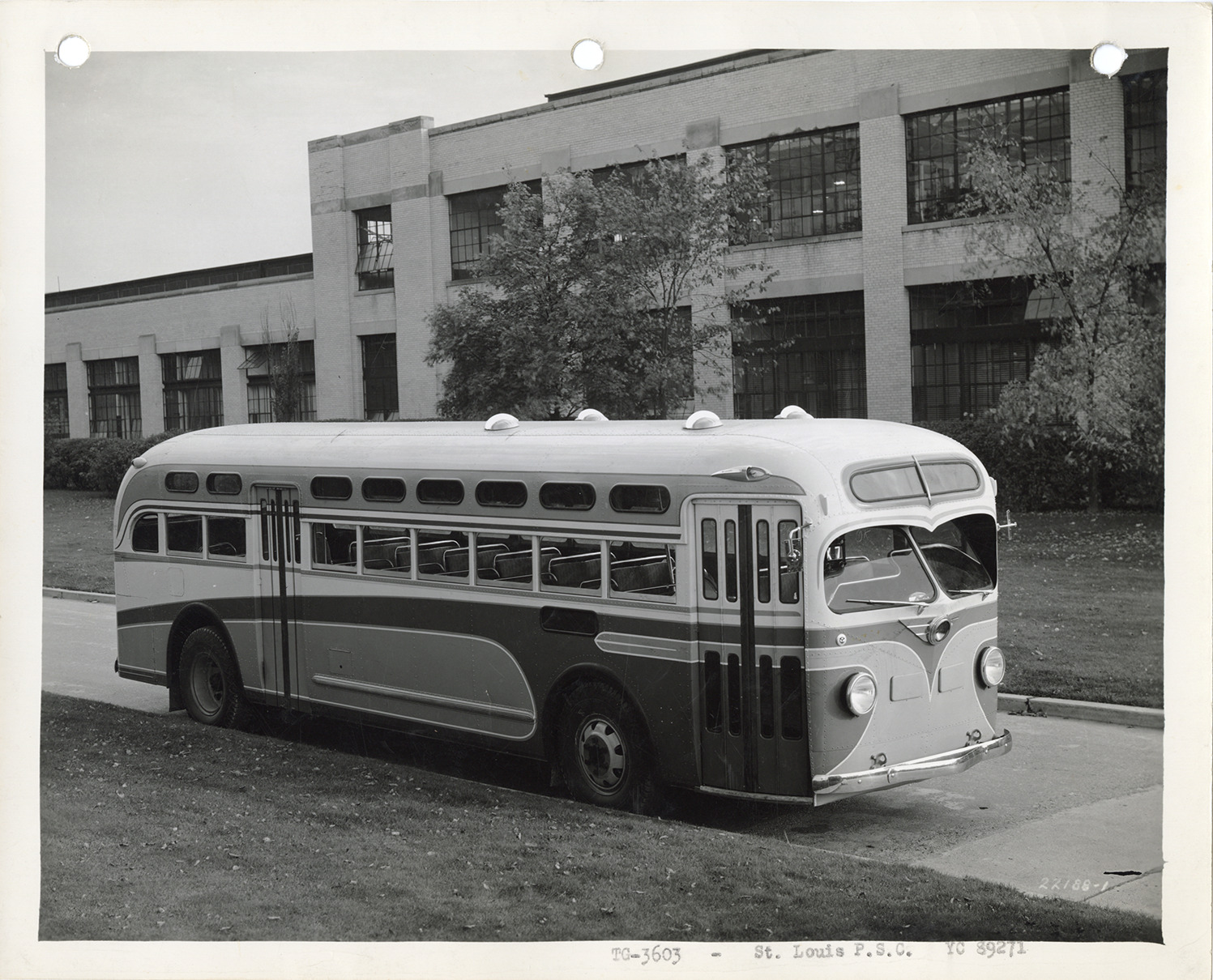 Favorite this☆ Yellow Truck and Coach bus, Model TG-3603 Description: View of a Yellow Truck and Coach bus, Model TG-3603. Typed on front: "TF-3603, St. Louis P.S.C., YC-89271." Handwritten on back: "Yellow Truck & Coach. Model TG-3603, 1940." Details Resource ID: na049749 Subject: Buses Yellow Truck and Coach Manufacturing Company General Motors Truck Company Photographic prints Date Issued: 1940 Format: 1 photographic print ; 8 x 10 in. Member of: National Automotive History Collection Filing Location: MS121/VanDegrift, Thomas, 20:10 Rights: Physical rights are retained by DPL. Copyright is retained in accordance with U.S. copyright laws.