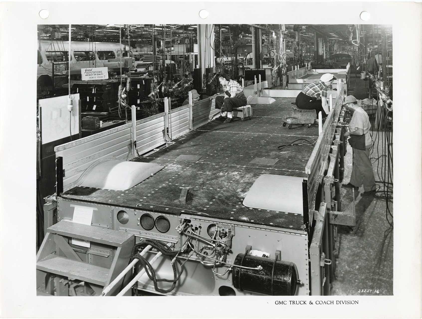 Workers assembling GMC Truck & Coach bus, Model PD-4104