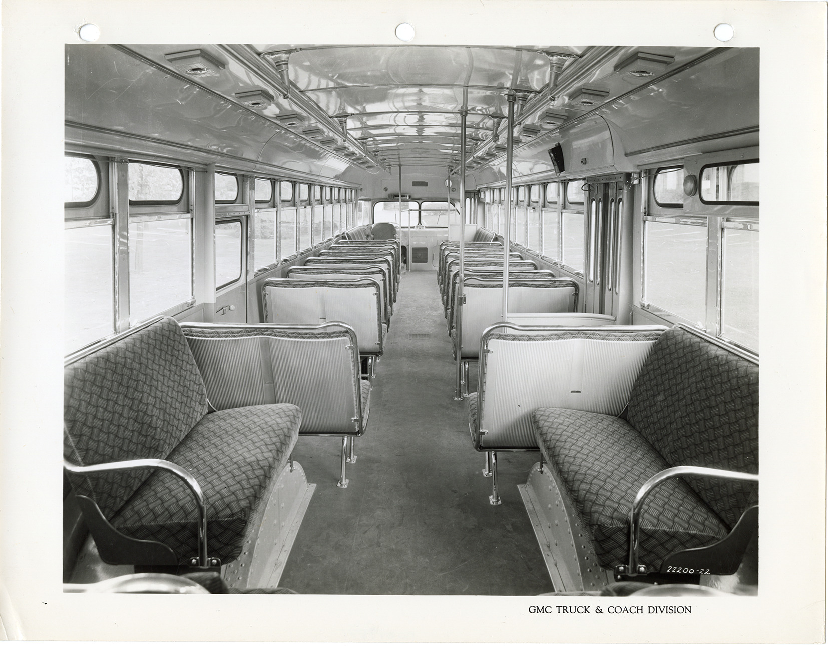 Favorite this☆ Interior, Yellow Truck and Coach bus, Model TD-55 Description: Interior view of a Yellow Truck and Coach bus, Model TD-55, showing seats. Printed on front: "GMC Truck & Coach Division." Handwritten on back: "Yellow Truck & Coach, Model TD-55." Details Resource ID: na049841 Subject: Buses--Interiors Buses--Seats Yellow Truck and Coach Manufacturing Company General Motors Truck Company Photographic prints Date Issued: 1940 Format: 1 photographic print ; 8.5 x 11 in. Member of: National Automotive History Collection Filing Location: MS121/VanDegrift, Thomas, 21:12 Rights: Physical rights are retained by DPL. Copyright is retained in accordance with U.S. copyright laws.