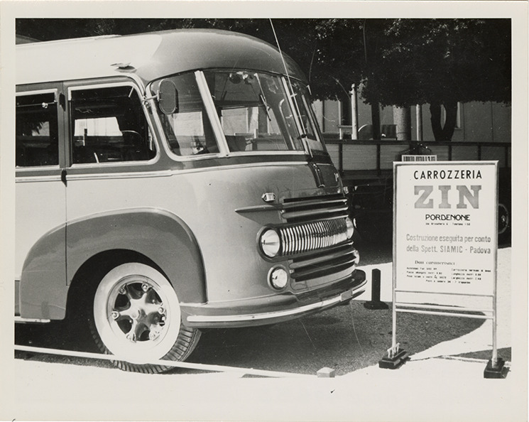 Partial view of a Zin bus, showing front end. "Carrozzeria Zin pordenone" sign on right. Handwritten on back: "Zin (Italy)."