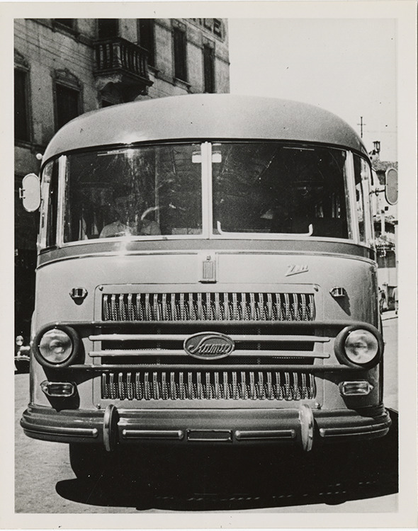 Favorite this☆ Zin bus Description: Front view of a Zin bus. Handwritten on back: "Zin (Italy)." Details Resource ID: na049856 Subject: Buses Photographic prints Date Issued: Unknown year Format: 1 photographic print ; 5 x 4 in. Member of: National Automotive History Collection Filing Location: MS121/VanDegrift, Thomas, 21:13 Rights: Physical rights are retained by DPL. Copyright is retained in accordance with U.S. copyright laws.