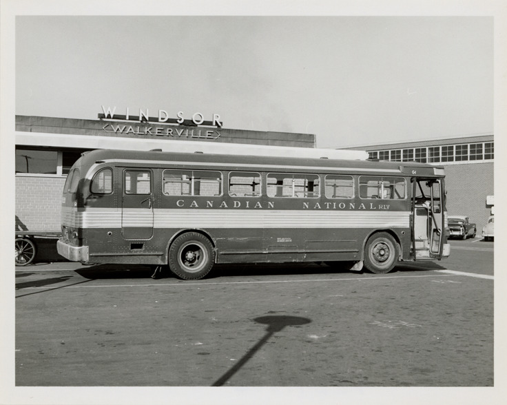 Favorite this☆ 1950 Fageol Twin Coach bus, Canadian National Railway Description: View of a Fageol Twin Coach bus for Canadian National Railway. Stamped on back: "Sep 61." Handwritten on back: "Fageol Twin Coach. Model 38-S. Built 1950. CN Ry. Windsor-Detroit." Details Resource ID: na049863 Subject: Buses Fageol Motors Company Canadian National Photographic prints Date Issued: 1961-09 Format: 1 photographic print ; 4 x 5 in. Member of: National Automotive History Collection Filing Location: MS121/VanDegrift, Thomas, 7:7 Rights: Physical rights are retained by DPL. Copyright is retained in accordance with U.S. copyright laws.