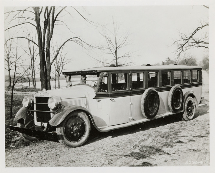 View of a 1924 GMC sedan coach. Handwritten on back: "GMC sedan coach, 1924. Built by Experimental Dept. Model X-30? Body not GMC built."