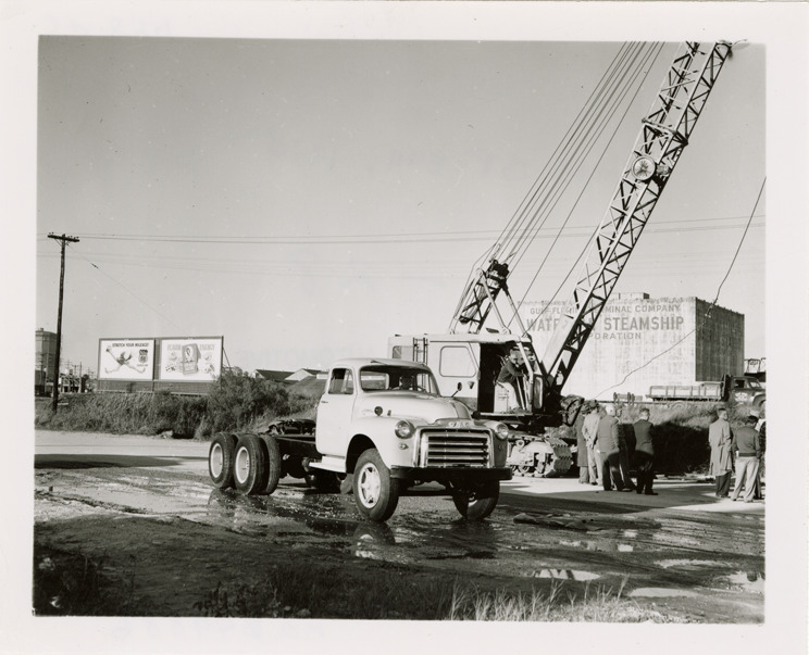 Favorite this☆ 1954 GMC truck on construction site Description: View of a 1954 GMC truck on a construction site. Crane in background. Handwritten on back: "GMC SP-890, 1954." Details Resource ID: na049886 Subject: GMC trucks Cranes, derricks, etc. Photographic prints Date Issued: Unknown year Format: 1 photographic print ; 4 x 5 in. Member of: National Automotive History Collection Filing Location: MS121/VanDegrift, Thomas, 8:5 Rights: Physical rights are retained by DPL. Copyright is retained in accordance with U.S. copyright laws.