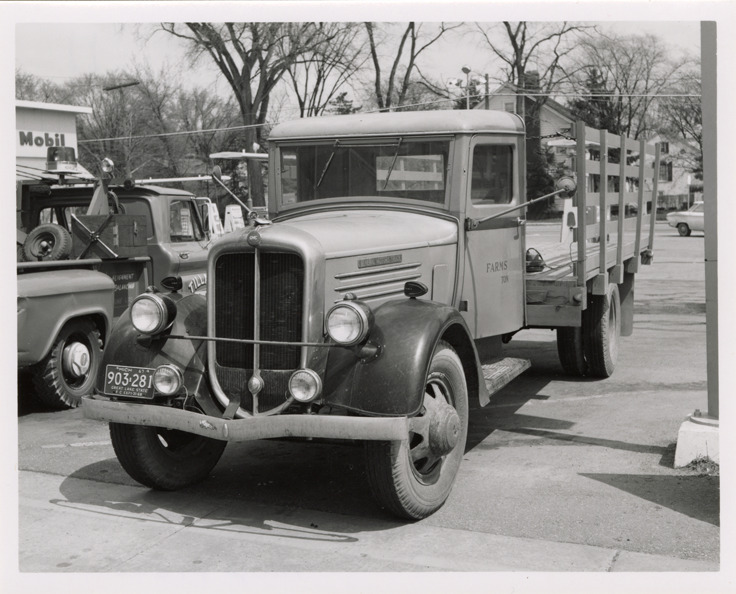 View of a GMC truck. Handwritten on back: "GMC."