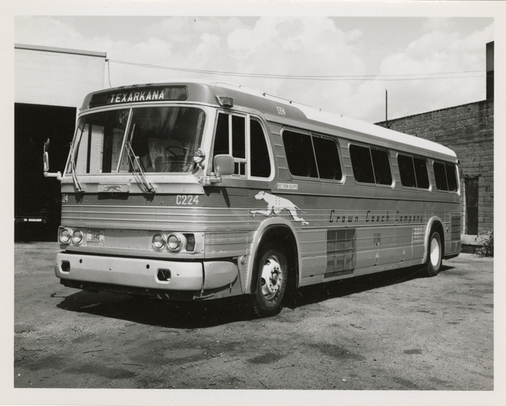 Favorite this☆ Greyhound bus, Crown Coach Company Description: View of a Greyhound bus for the Crown Coach Company. Stamped on back: "Aug 16 1964." Handwritten on back: "Jefferson Transportation." Details Resource ID: na049944 Subject: Greyhound buses Greyhound Lines, Inc. Photographic prints Date Issued: 1964-08-16 Format: 1 photographic print ; 4 x 5 in. Member of: National Automotive History Collection Filing Location: MS121/VanDegrift, Thomas, 12:2 Rights: Physical rights are retained by DPL. Copyright is retained in accordance with U.S. copyright laws.