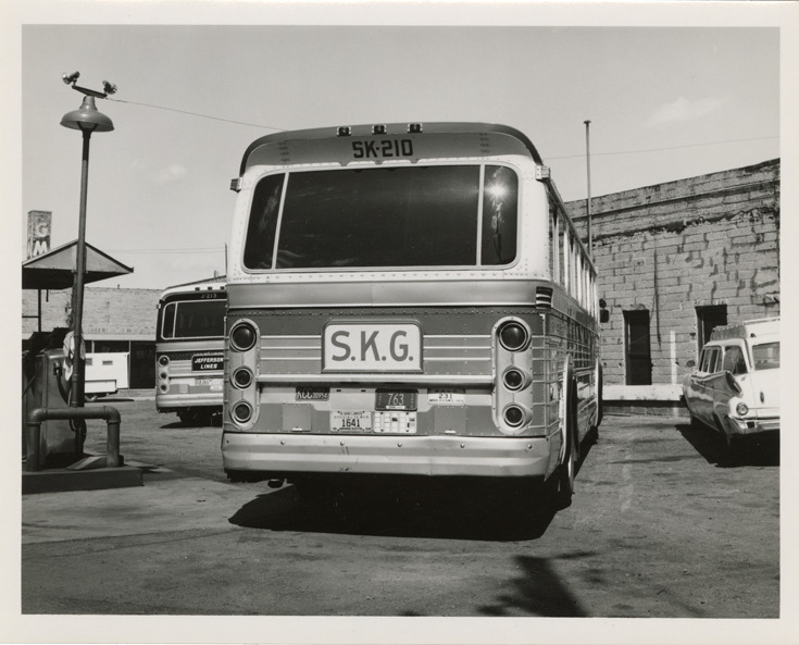 Favorite this☆ Jefferson Transportation Company bus Description: Rear view of a Jefferson Transportation Company bus. "S.K.G." sign on bus. Stamped on back: "Aug 17 1964." Handwritten on back: "Jefferson Transportation." Details Resource ID: na049948 Subject: Buses Jefferson Transportation Company Photographic prints Date Issued: 1964-08-17 Format: 1 photographic print ; 4 x 5 in. Member of: National Automotive History Collection Filing Location: MS121/VanDegrift, Thomas, 12:2 Rights: Physical rights are retained by DPL. Copyright is retained in accordance with U.S. copyright laws.