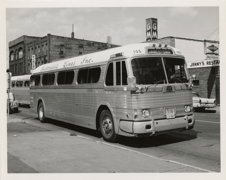 Favorite this☆ Jefferson Transportation Company bus, Jackrabbit Lines Description: View of a Jefferson Transportation Company bus for Jackrabbit Lines. Stamped on back: "Aug 16 1964." Handwritten on back: "Jefferson Transportation." Details Resource ID: na049952 Subject: Buses Jefferson Transportation Company Photographic prints Date Issued: 1964-08-16 Format: 1 photographic print ; 4 x 5 in. Member of: National Automotive History Collection Filing Location: MS121/VanDegrift, Thomas, 12:2 Rights: Physical rights are retained by DPL. Copyright is retained in accordance with U.S. copyright laws.