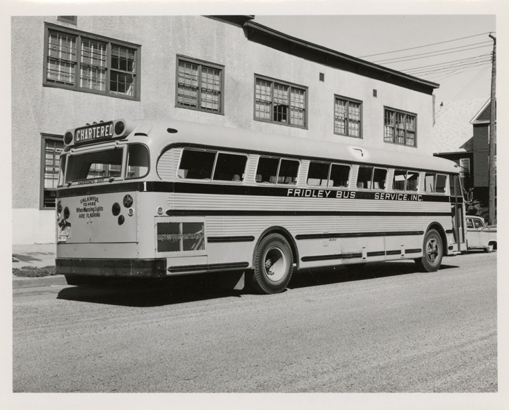 Favorite this☆ Jefferson Transportation Company bus, Fridley Bus Service Description: View of a Jefferson Transportation Company bus for Fridley Bus Service. Stamped on back: "Aug 17 1964." Handwritten on back: "Jefferson Transportation." Details Resource ID: na049954 Subject: Buses Jefferson Transportation Company Photographic prints Date Issued: 1964-08-17 Format: 1 photographic print ; 4 x 5 in. Member of: National Automotive History Collection Filing Location: MS121/VanDegrift, Thomas, 12:2 Rights: Physical rights are retained by DPL. Copyright is retained in accordance with U.S. copyright laws.