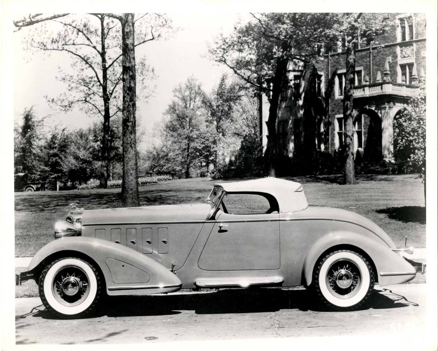 View of a 1933 Chrysler Imperial roadster. Label on back: "Chrysler Imperial roadster, 1933. Straight 8."