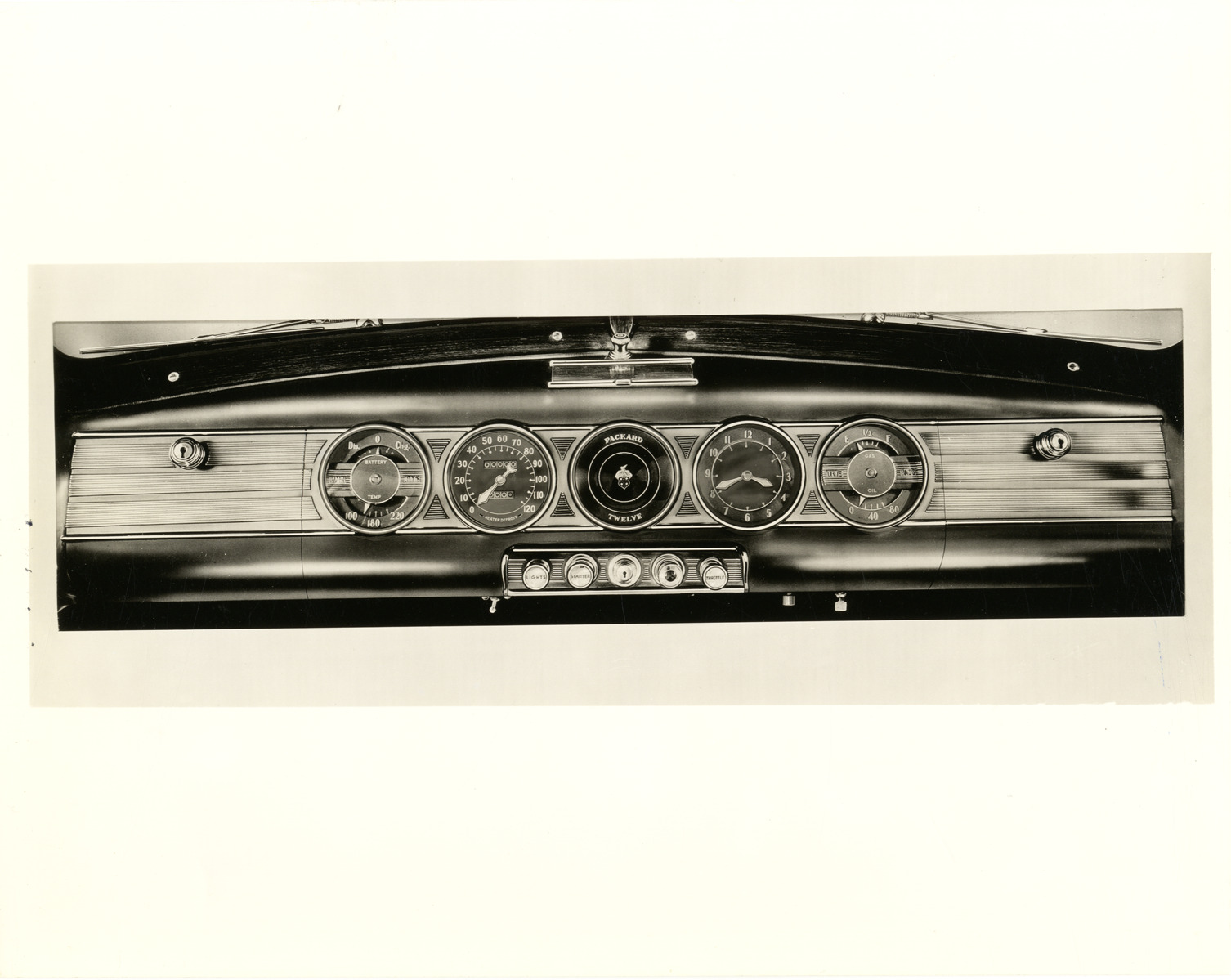 Favorite this☆ Instrument panel for 1939 Packard Twelve automobile Description: Artist's depiction of an instrument panel for a 1939 Packard Twelve car. Handwritten on back: "Packard Twelve, 1939. Instrument panel." Details Resource ID: na050065 Subject: Packard automobile Automobiles--Instrument panels Photographic prints Date Issued: Unknown year Format: 1 photographic print ; 8 x 10 in. Member of: National Automotive History Collection Packard Collection Negative Number: 6432-C Rights: Physical rights are retained by DPL. Copyright is retained in accordance with U.S. copyright laws.