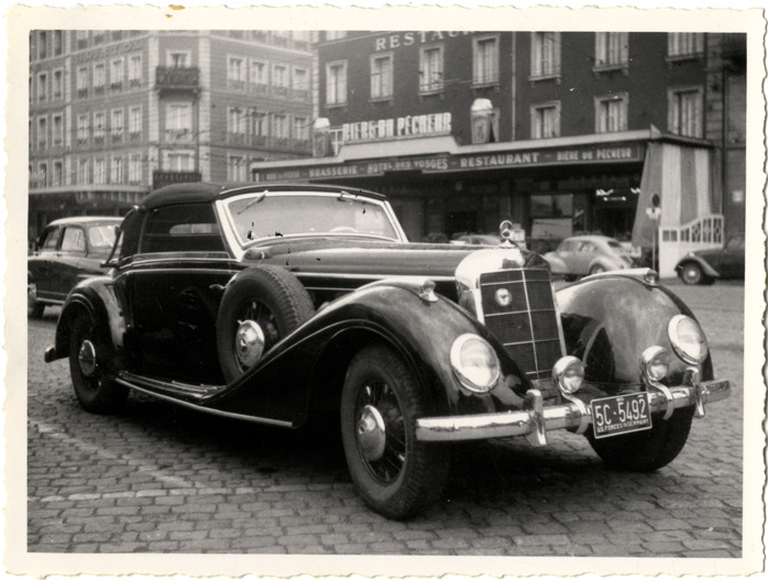 Favorite this☆ Mercedes-Benz 540K automobile Description: View of a Mercedes-Benz 540K car. Commercial buildings in background. Handwritten on back: "M-B 540K (modified)." Details Resource ID: na050079 Subject: Mercedes automobiles Photographic prints Date Issued: Unknown year Format: 1 photographic print ; 3.5 x 4.75 in. Member of: National Automotive History Collection George Moffitt Photograph Collection Filing Location: Mercedes Rights: Physical rights are retained by DPL. Copyright is retained in accordance with U.S. copyright laws.