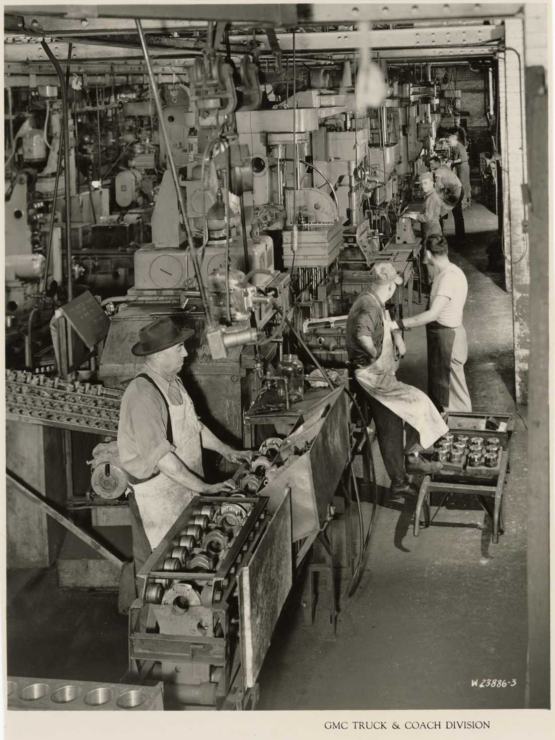 Workers on bearing cap machining line, Plant 4, GMC Truck & Coach Division factory