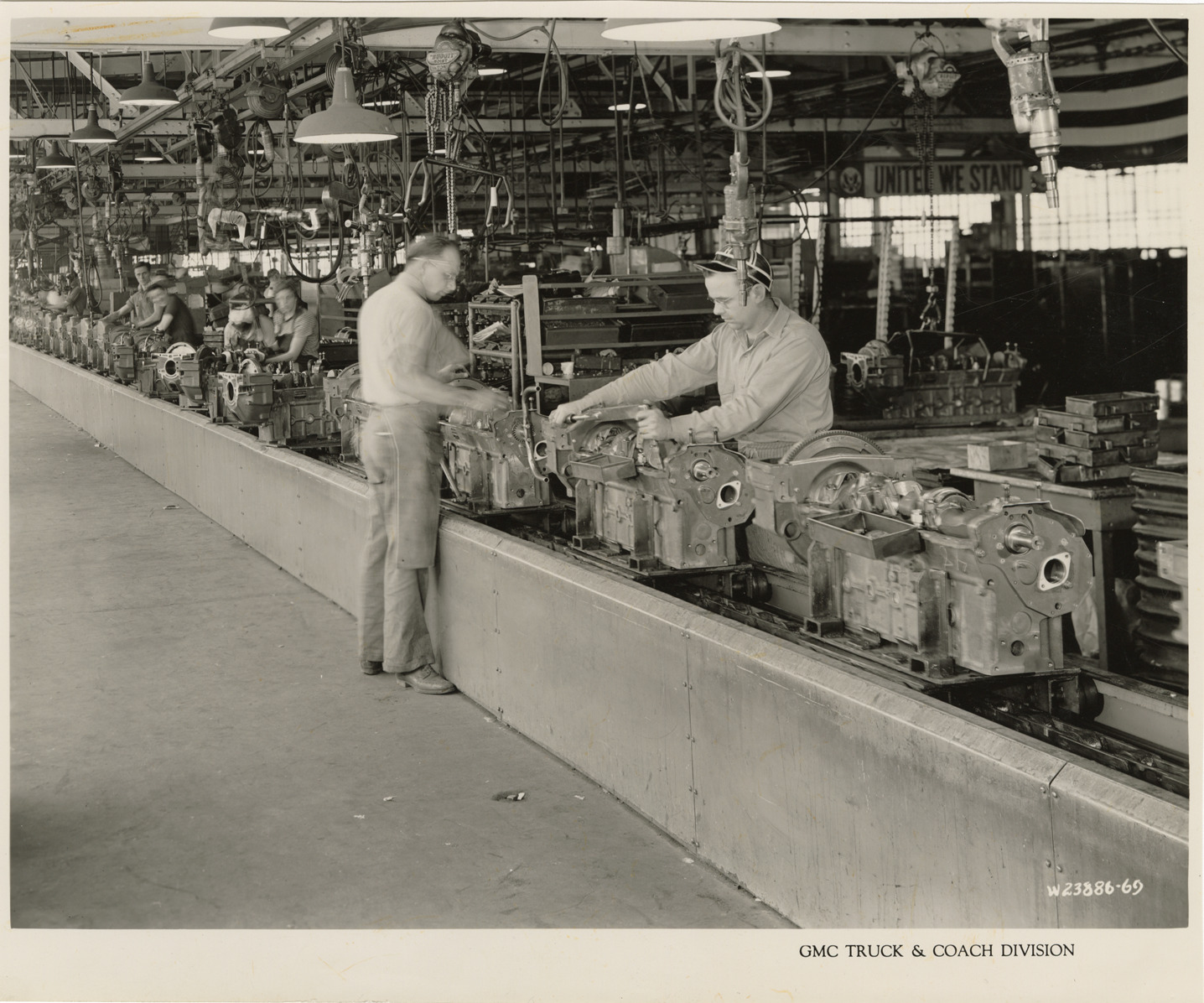 Workers on assembly line, Plant 4, GMC Truck & Coach Division factory