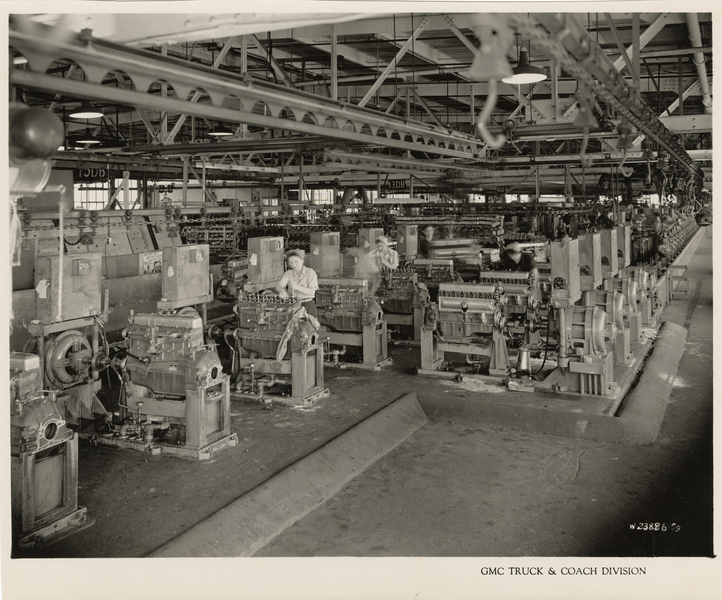 Favorite this☆ Women workers testing engines, Plant 4, GMC Truck & Coach Division factory Description: View of woman workers testing engines at Plant 4, Engine Assembly, Bldg. 20, GMC Truck & Coach plant. Printed on front: "GMC Truck & Coach Division." Handwritten on back: "Plant 4, Engine Assembly, Bldg. 20, third floor. Engine test after assembly. Factories--GMC, ca. 1943." Details Resource ID: na050297 Subject: Women automobile industry workers--Michigan--Pontiac Motor vehicles--Motors--Testing Automobile factories--Michigan--Pontiac GMC Truck & Coach Assembly-line methods Photographic prints Date Issued: 1943 (year approximate) Format: 1 photographic print ; 8 x 9.75 in. Member of: National Automotive History Collection Filing Location: Factories--GMC, ca. 1943, #2 Rights: Physical rights are retained by DPL. Copyright is retained in accordance with U.S. copyright laws.