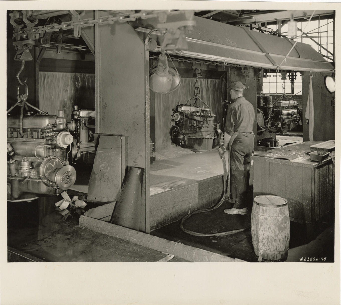 Favorite this☆ Worker painting engine, Plant 4, GMC Truck & Coach Division factory Description: View of worker painting an engine at Plant 4, Engine Assembly, Bldg. 20, GMC Truck & Coach plant. Handwritten on back: "Plant 4, Engine Assembly, Bldg. 20, third floor. Painting engine after assembled on line. Factories--GMC, ca. 1943." Details Resource ID: na050299 Subject: Automobile industry workers--Michigan--Pontiac Motor vehicles--Motors--Painting Automobile factories--Michigan--Pontiac GMC Truck & Coach Photographic prints Date Issued: 1943 (year approximate) Format: 1 photographic print ; 8 x 9.25 in. Member of: National Automotive History Collection Filing Location: Factories--GMC, ca. 1943, #2 Rights: Physical rights are retained by DPL. Copyright is retained in accordance with U.S. copyright laws.